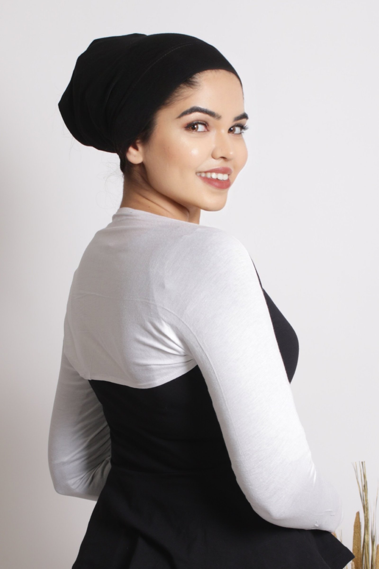 Black Ear-slit Access Hijab Cap