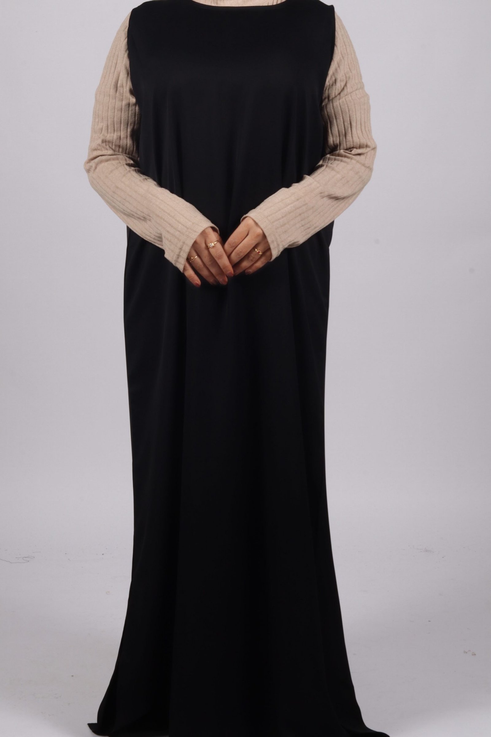 [vc_row][vc_column][vc_column_text]Complete your modest wardrobe with these essential layering dress! Made out of premium nida fabric, the sleeveless slip dress has a modest fit and comes with side slits to provide ease of movement. Perfect for your open abaya styles or any look that requires layering. The fabric allows fluid movement and provides all-day comfort. Comes in 3 essential colors that complement every look and fit