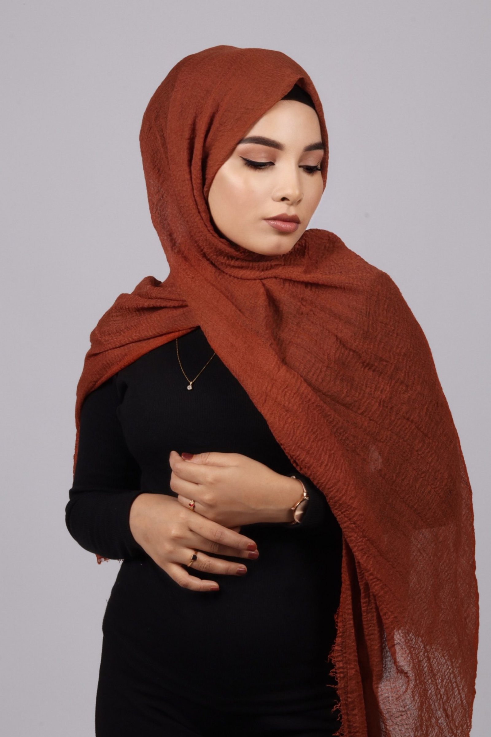 2 reviews for Burnt Orange Crinkled Cotton Hijab