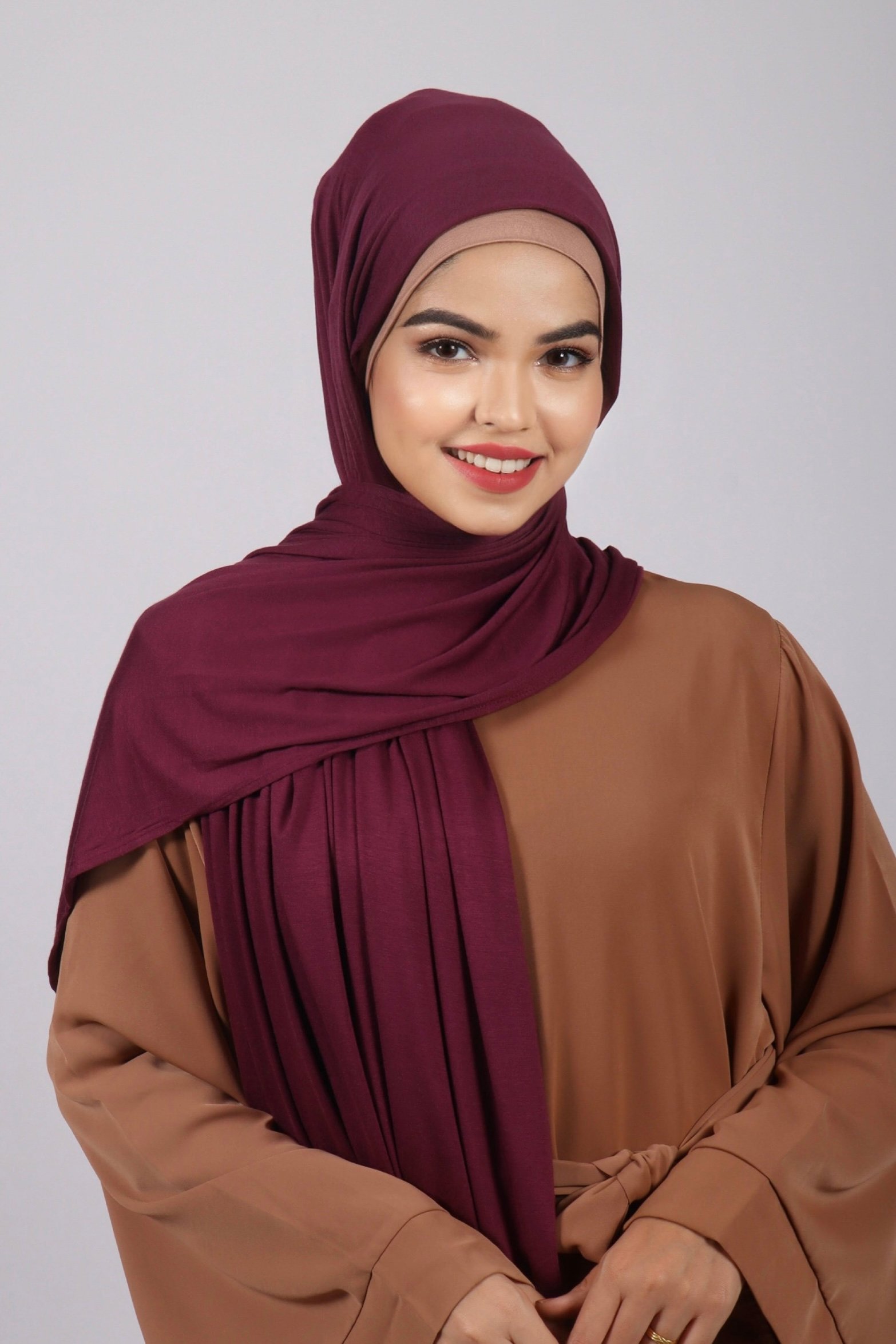 Our Jersey hijab collection features an exquisite premium cotton jersey fabric that is opaque, soft, and breathable. The luxurious fabric drapes luxuriously and does not need an underscarf or pins to hold it in place. Perfect for the casual days where you need a hijab that moves as effortlessly as you. Be it a chic urban look or a desi outfit, the jersey hijab is so versatile that it is perfect for a range of styles.