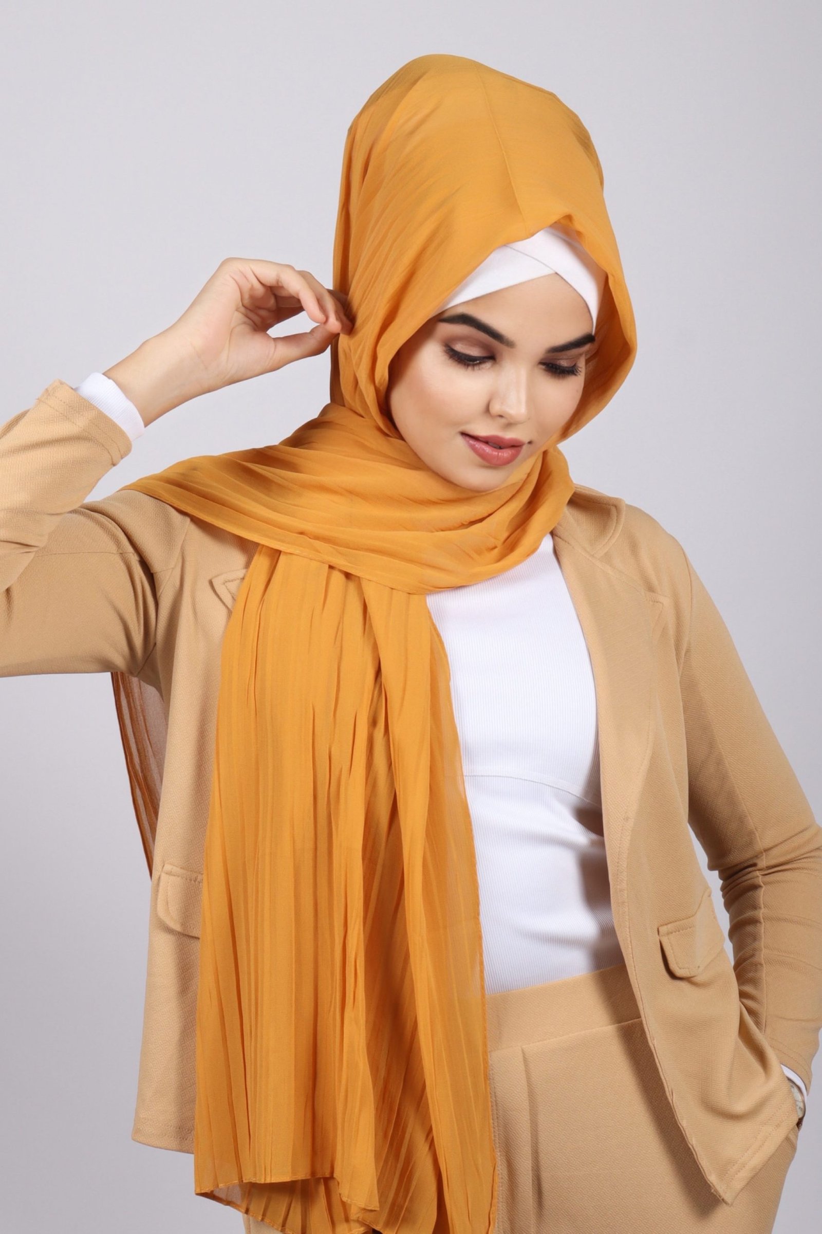 Bold and beautiful, it cannot get better than Cloak Couture’s Chiffon Pleated scarves. The premium georgette fabric is crafted with well-defined horizontal pleats all over. The incredible folds give it an effortlessly glamorous look. And that’s not all! Thanks to the pleats, your georgette hijab will no longer slip, making it the perfect choice for a no-pin casual style.