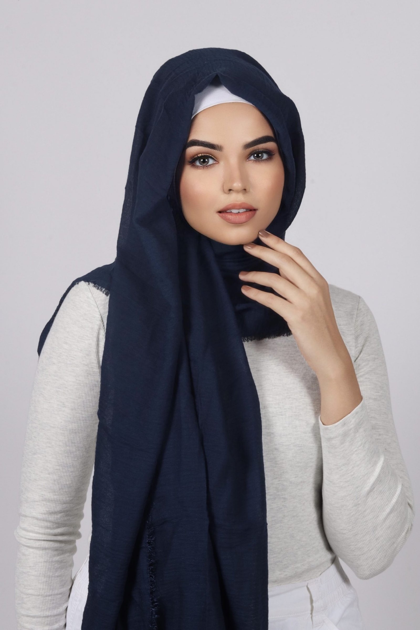 2 reviews for Navy Premium Crinkled Cotton Hijab