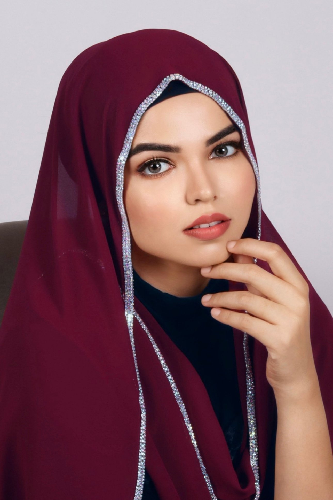 Bridal Maroon Crystal Hijab