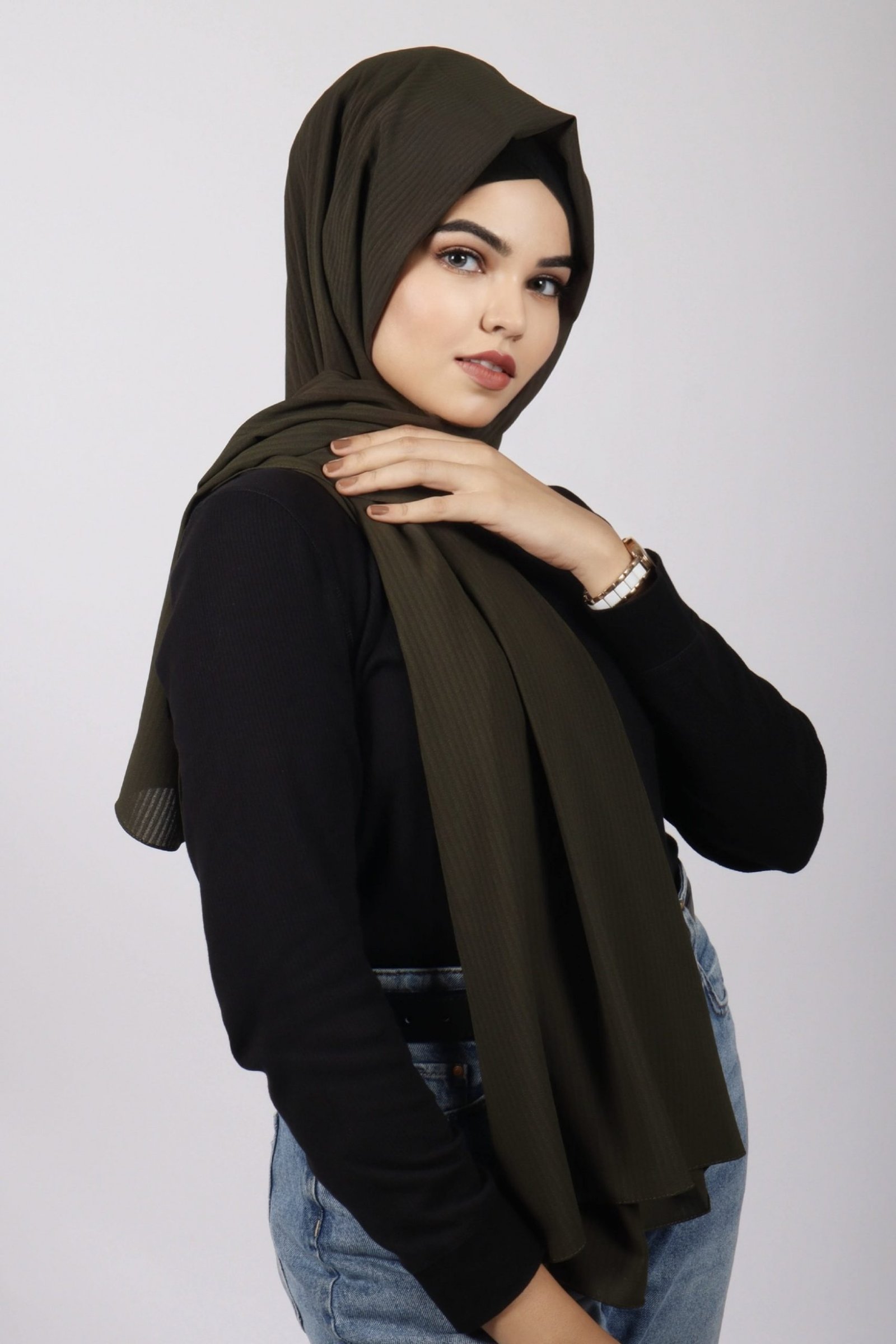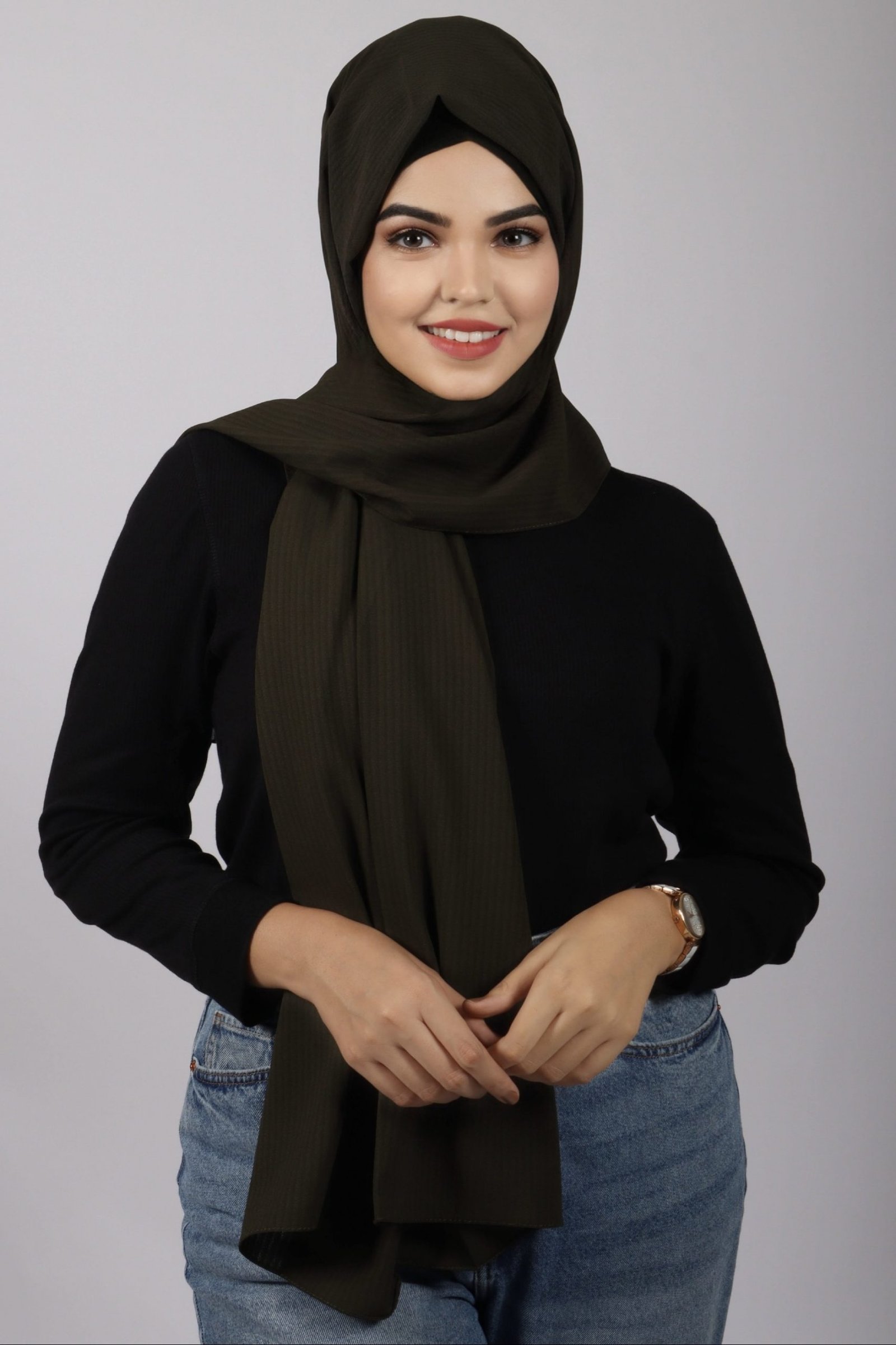 Specially crafted and curated in Turkey, our Turkish Textured Chiffon hijab collection is made from a unique blend of chiffon that’s ultra-luxurious, rich and smooth infused with a self-design striped pattern, making it a class apart. You haven’t experienced chiffon like this before! Experience true royalty with a hijab that drapes so beautifully and feels so soft, you’ll find yourself going back to this over and over again. Easy to drape, non-slip, comfortable, and most of all, elegant beyond words, you need to buy our exclusive Turkish Textured Chiffon hijab today.