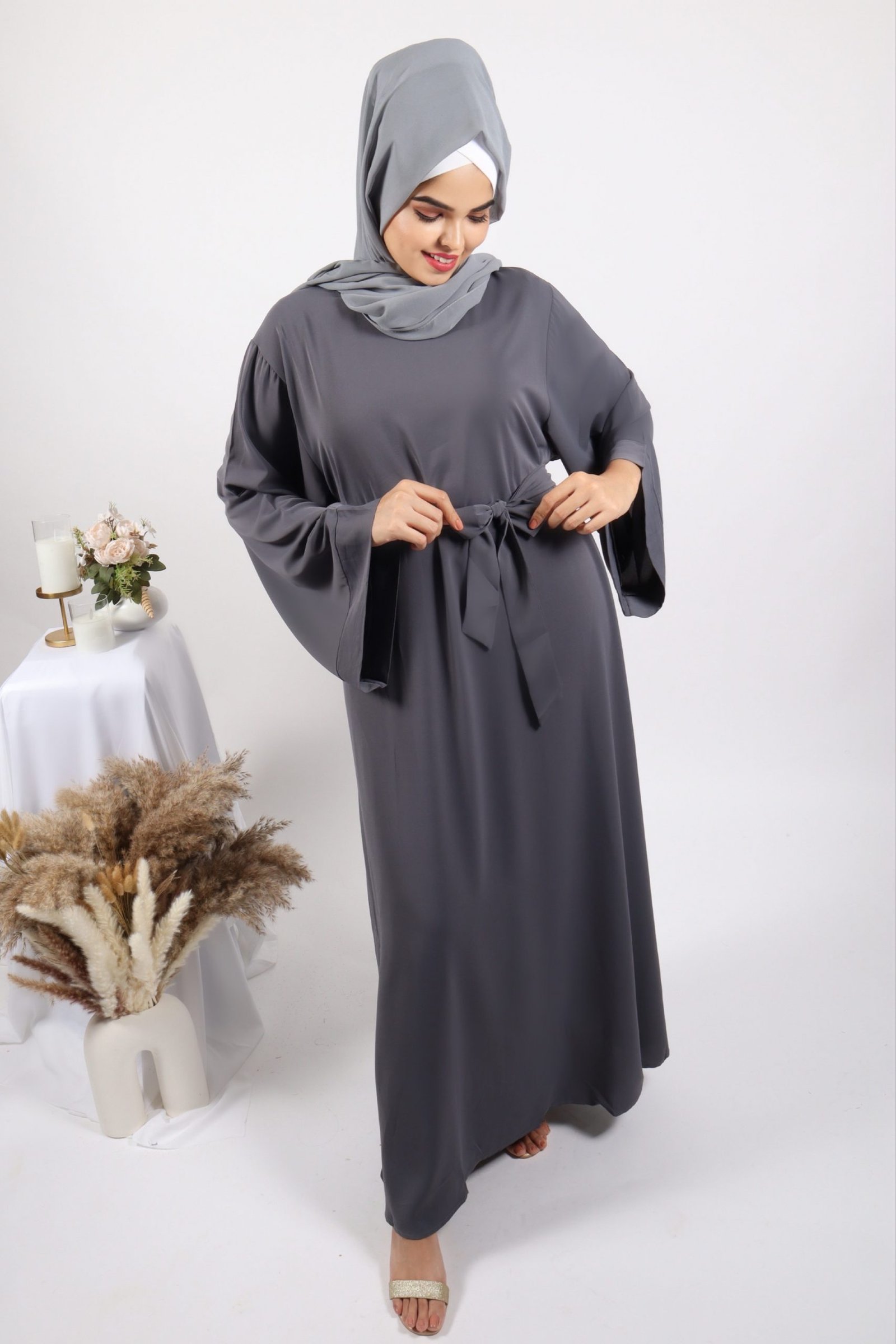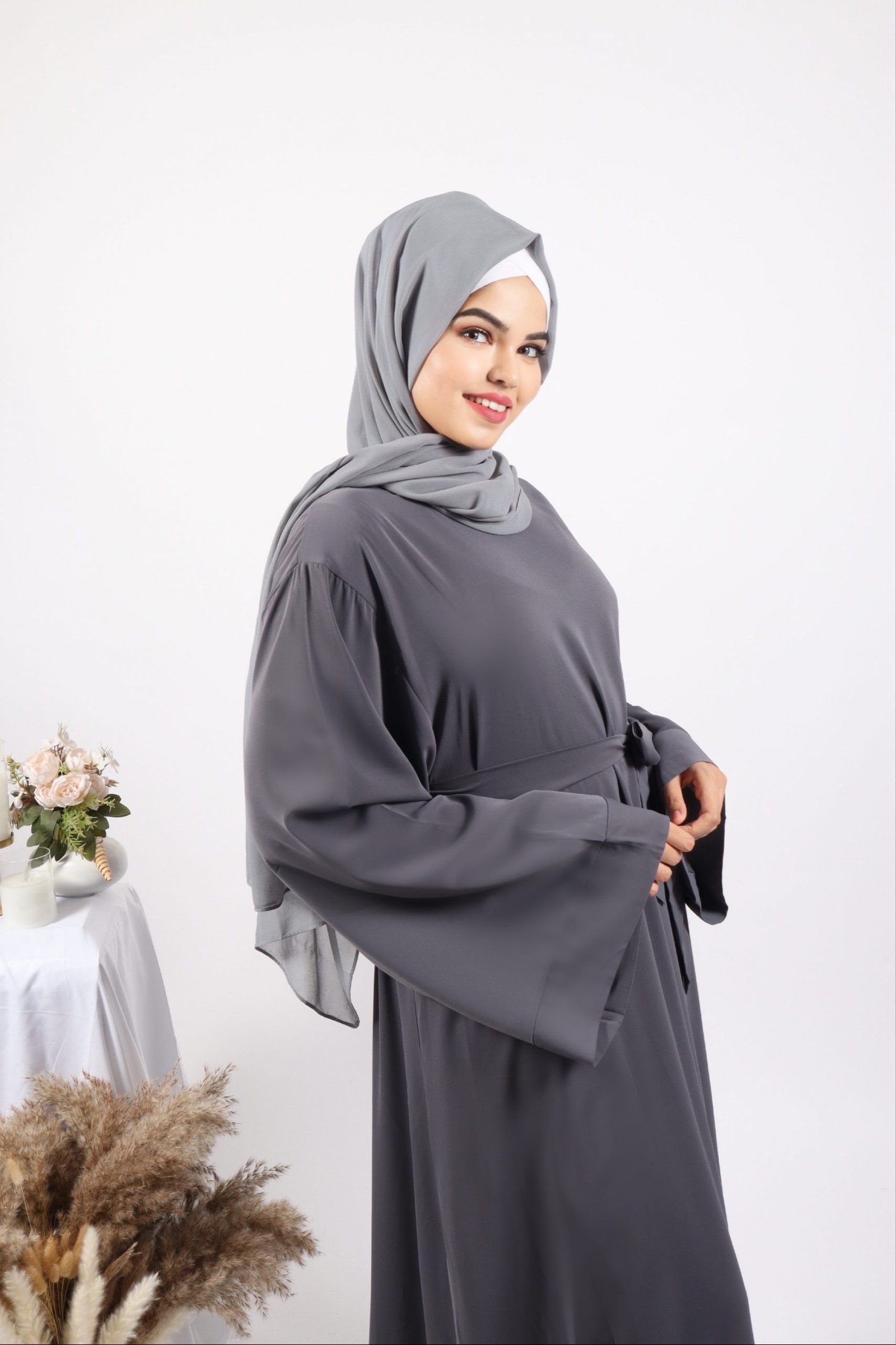 [vc_row][vc_column][vc_column_text]A must-have in every hijabi’s wardrobe – you can never go wrong with a classic grey abaya! The Eve Classic Modest Wear Abaya Dress is a staple abaya burqa that you’ll reach out for every day. Simple, elegant, with a flare cut bottom, and bell sleeves, this abaya gives you everything you ever need – modesty, comfort and style! Be it school, work or college, this classic abaya style is perfect for just about any occasion. Experience pure luxury and comfort as you step into this incredible piece from our International Modest Wear Abaya collection!