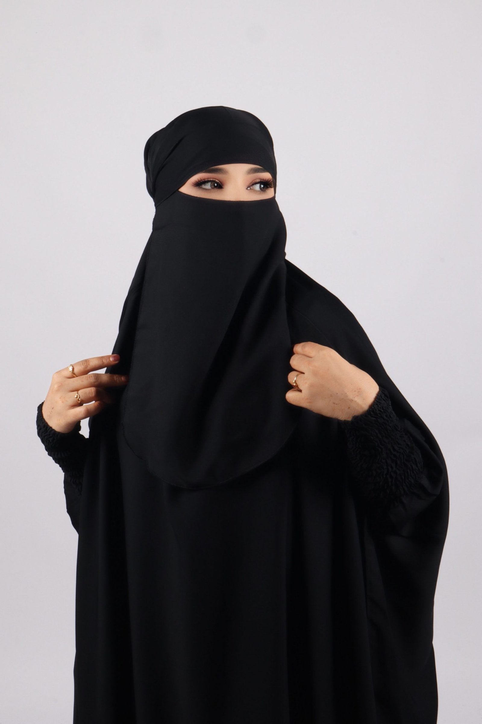 Haya Premium Nida Jilbab 3-Piece Set with Niqab – Midnight Black