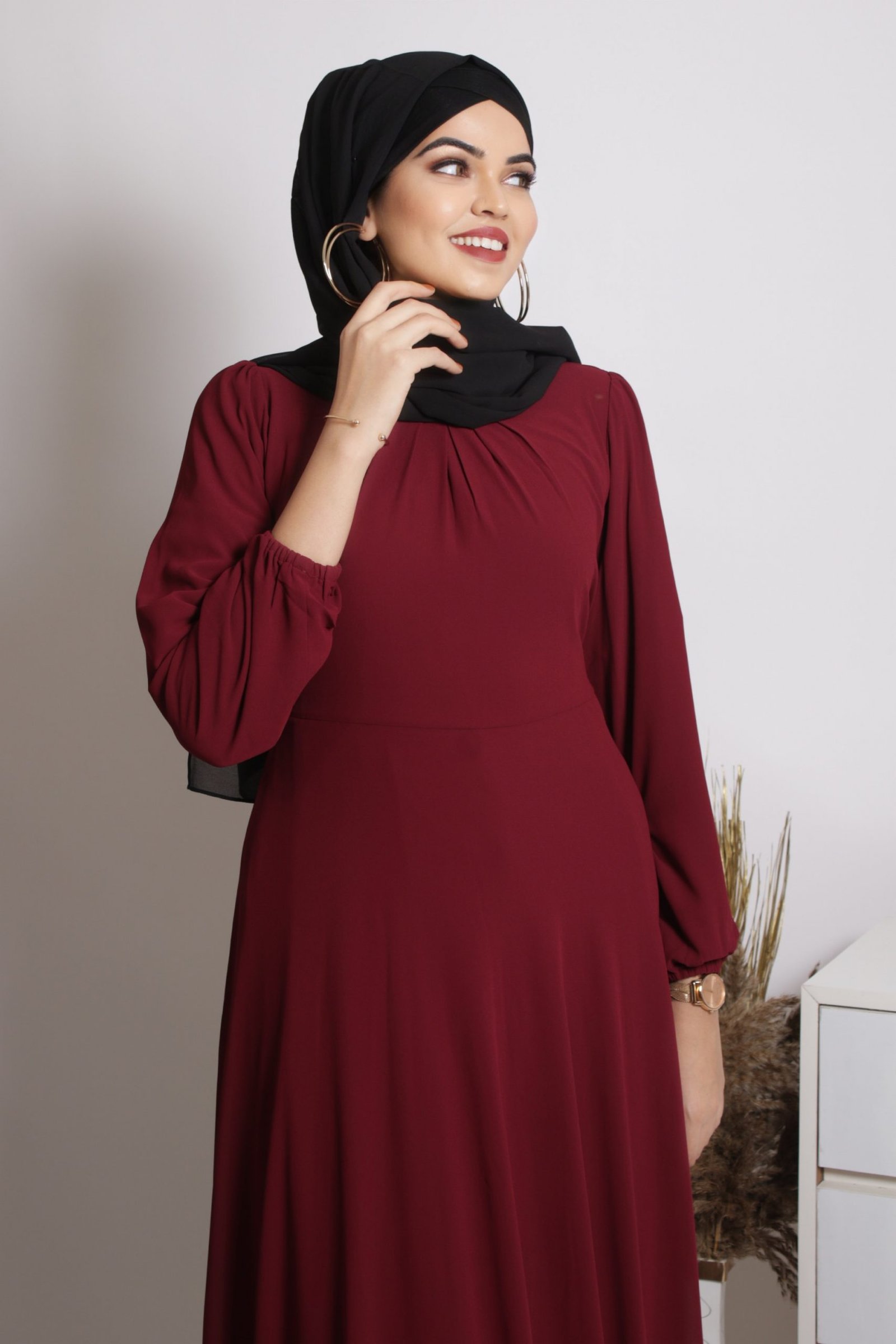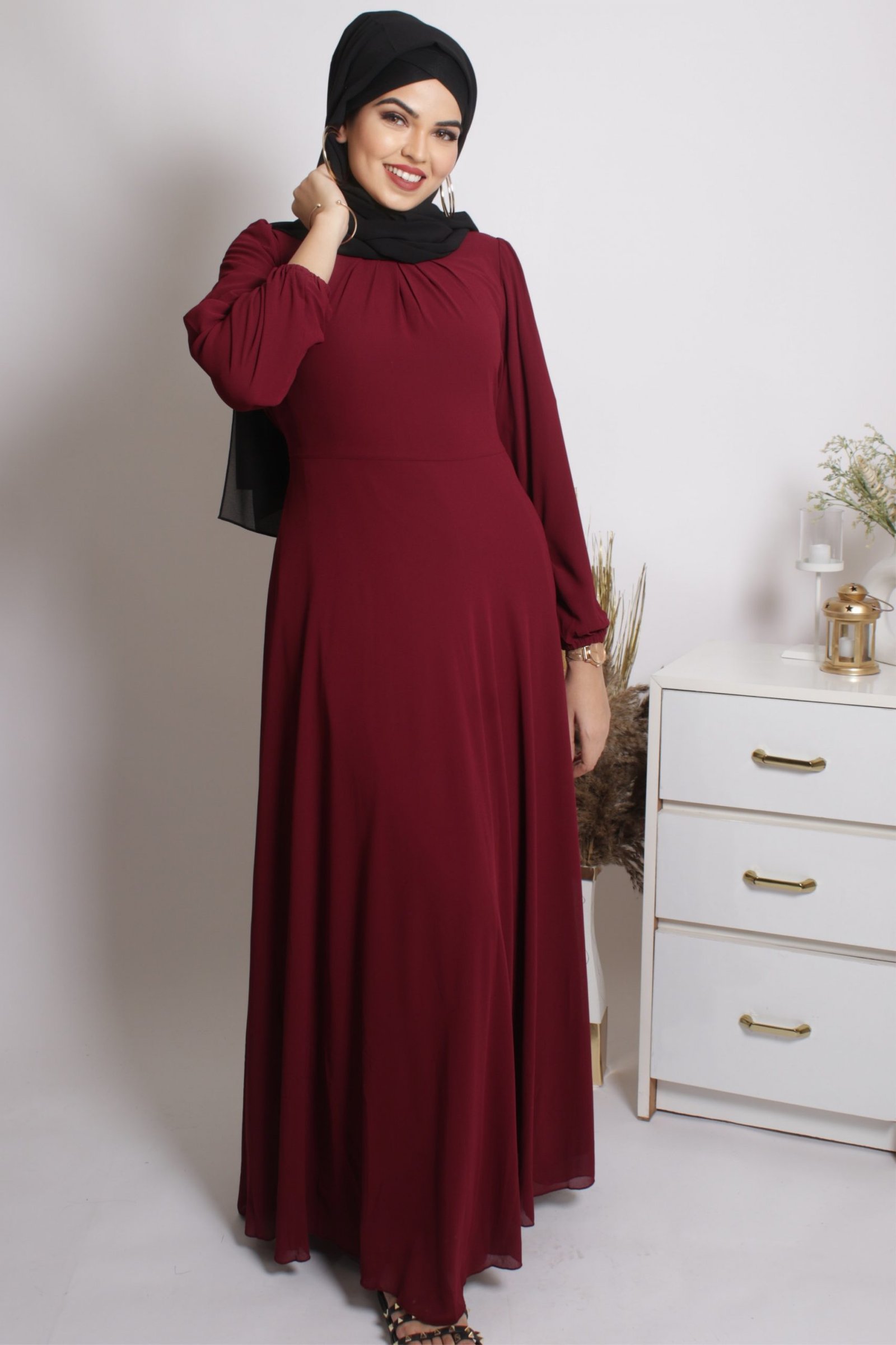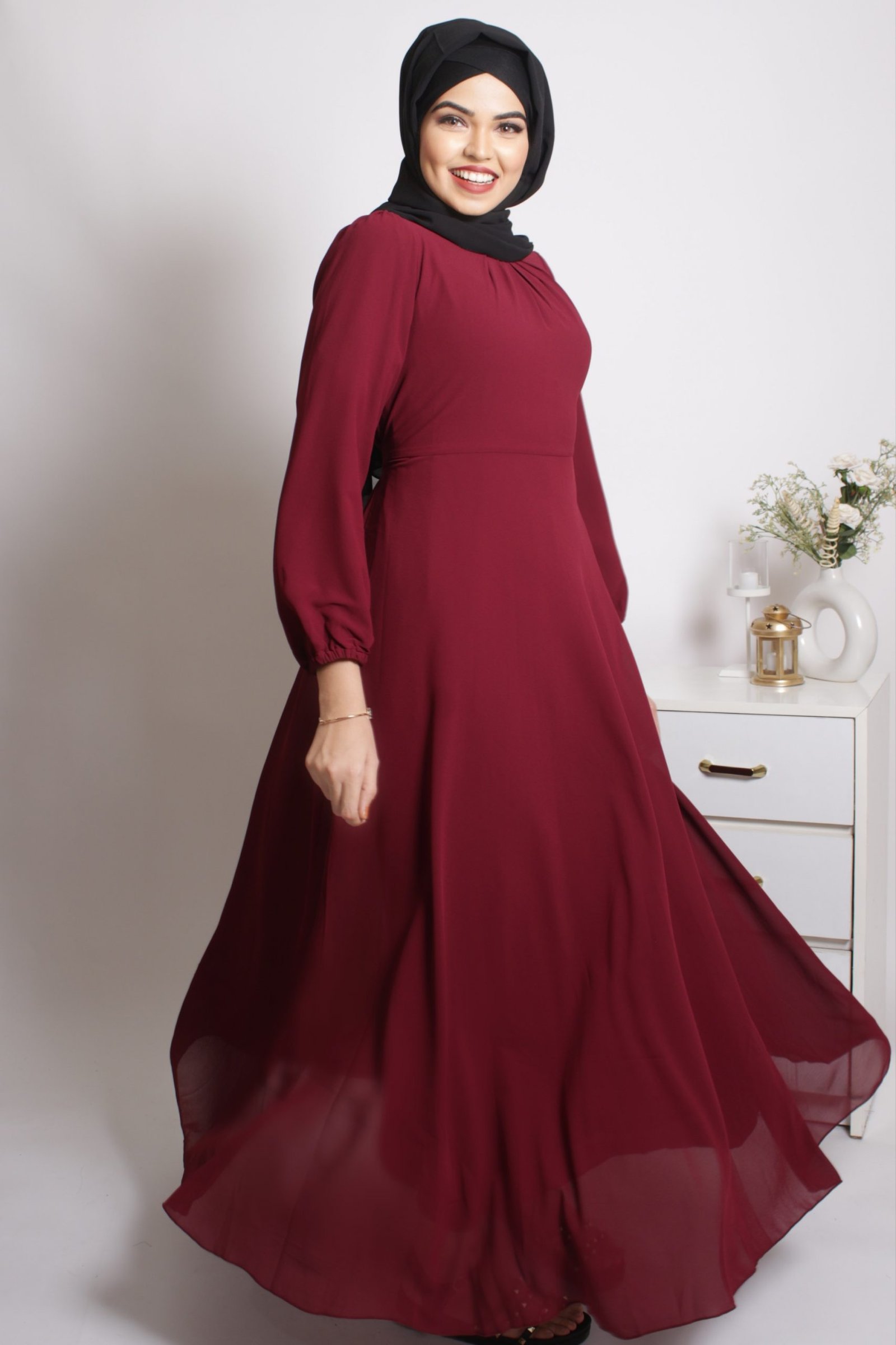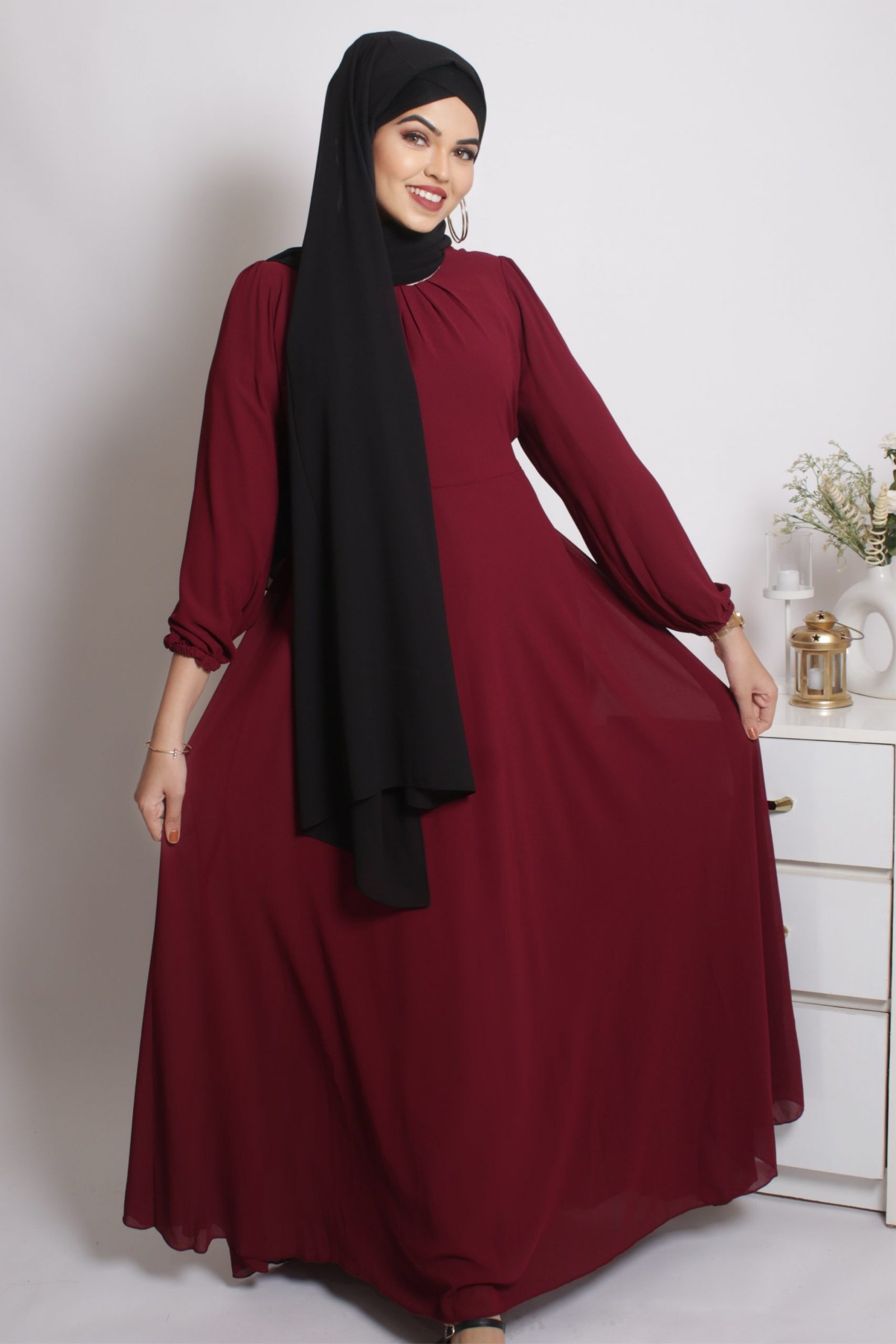 Tanaaz Flared Layered Gown / Abaya – Maroon