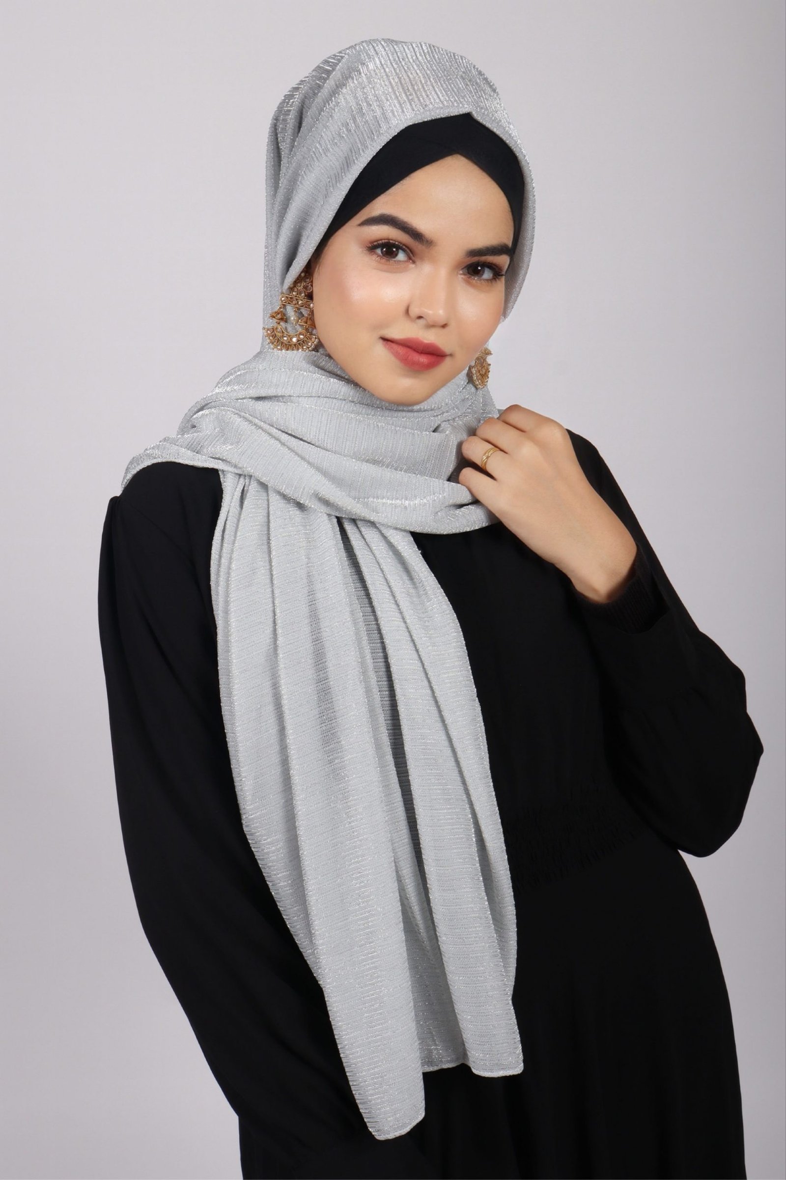 Presenting the all-new Metallic Ribbed hiab – the perfect party wear hijab for a super glamorous look! A mesmerising subtle shimmer fabric makes this the perfect match for occasions where you need a touch of glam. Easy to wrap around, the texture and the gorgeous shimmer infused in every thread allows you to step out like royalty every time. The hijab is backed by a matte, smooth backing, providing superior comfort and non-slip nature to the hijab.
