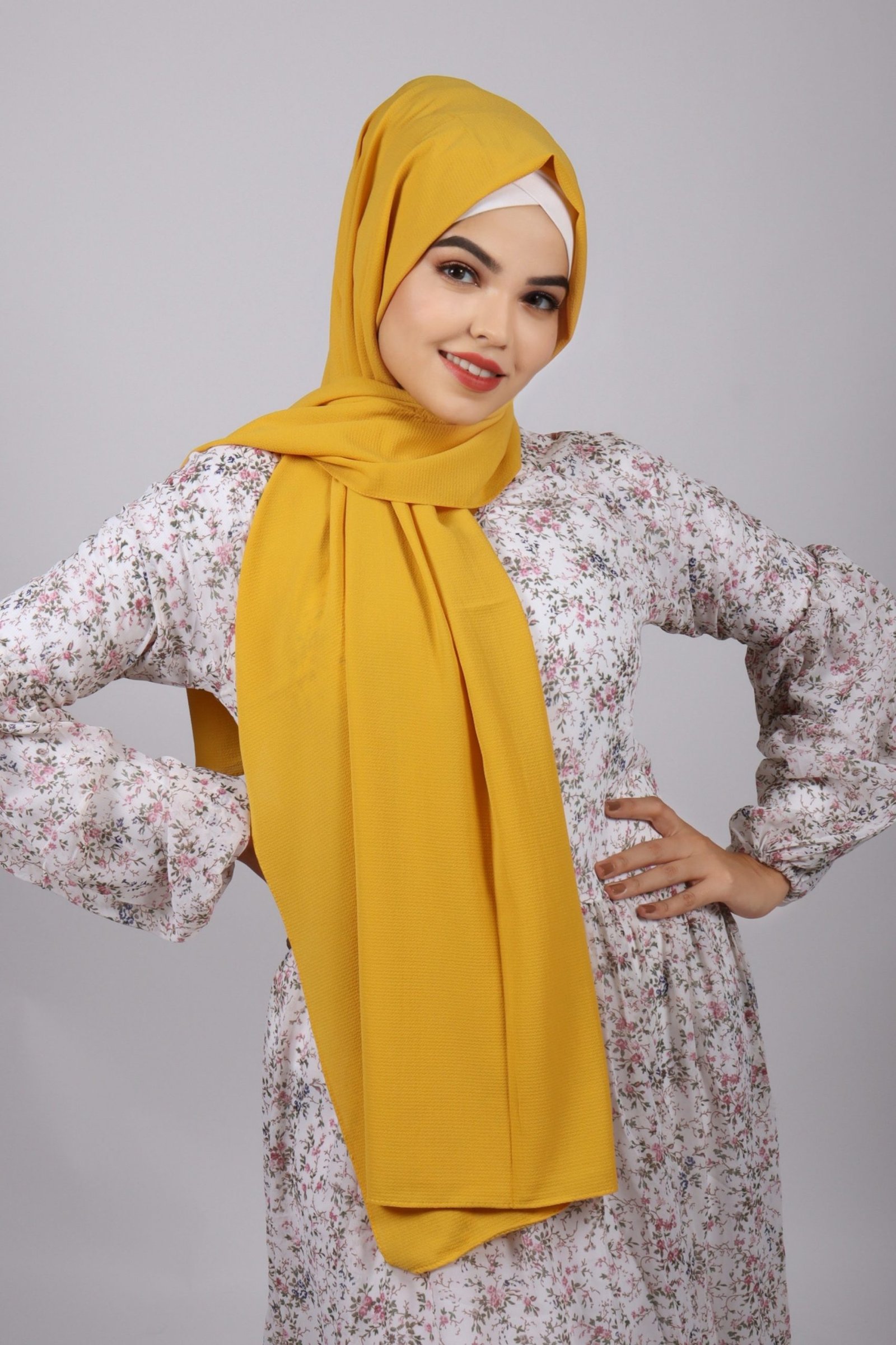 Heavier yet breathable, flowy but not slippery, simple yet classy – this collection of bubble chiffon hijabs is every hijabi’s dream! These immaculately crafted hijabs can instantly spice up any outfit and bear a smooth luxurious, bubbly texture, giving it a rich look and feel. In a stunning palette of peppy colors, this collection can add a dash of color to your everyday basic. Go ahead and try on this classic hijab!